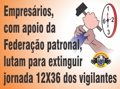 Com o intuito de se isentarem da obrigação do pagamento de direitos e do respeito aos intervalos de trabalho, empresários articulam golpe contra os vigilantes para acabar com a jornada 12 x 36 e utilizam como aliada nesta luta a Federação Nacional de Empresas de Segurança e Transporte de Valores (Fenavist).