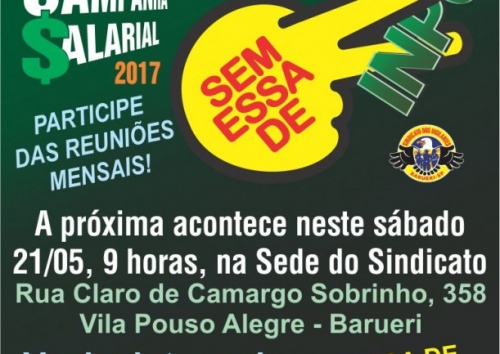 No próximo sábado, 21/5, a partir das 9 horas, a diretoria do Sindicato dos Vigilantes de Barueri realizará mais uma reunião de trabalho com os profissionais de segurança privada da região.