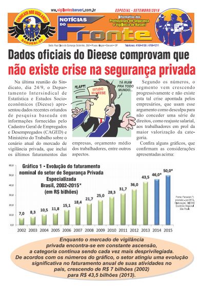 Confira informativo com dados de pesquisa do Dieese sobre o mercado de vigilância privada!